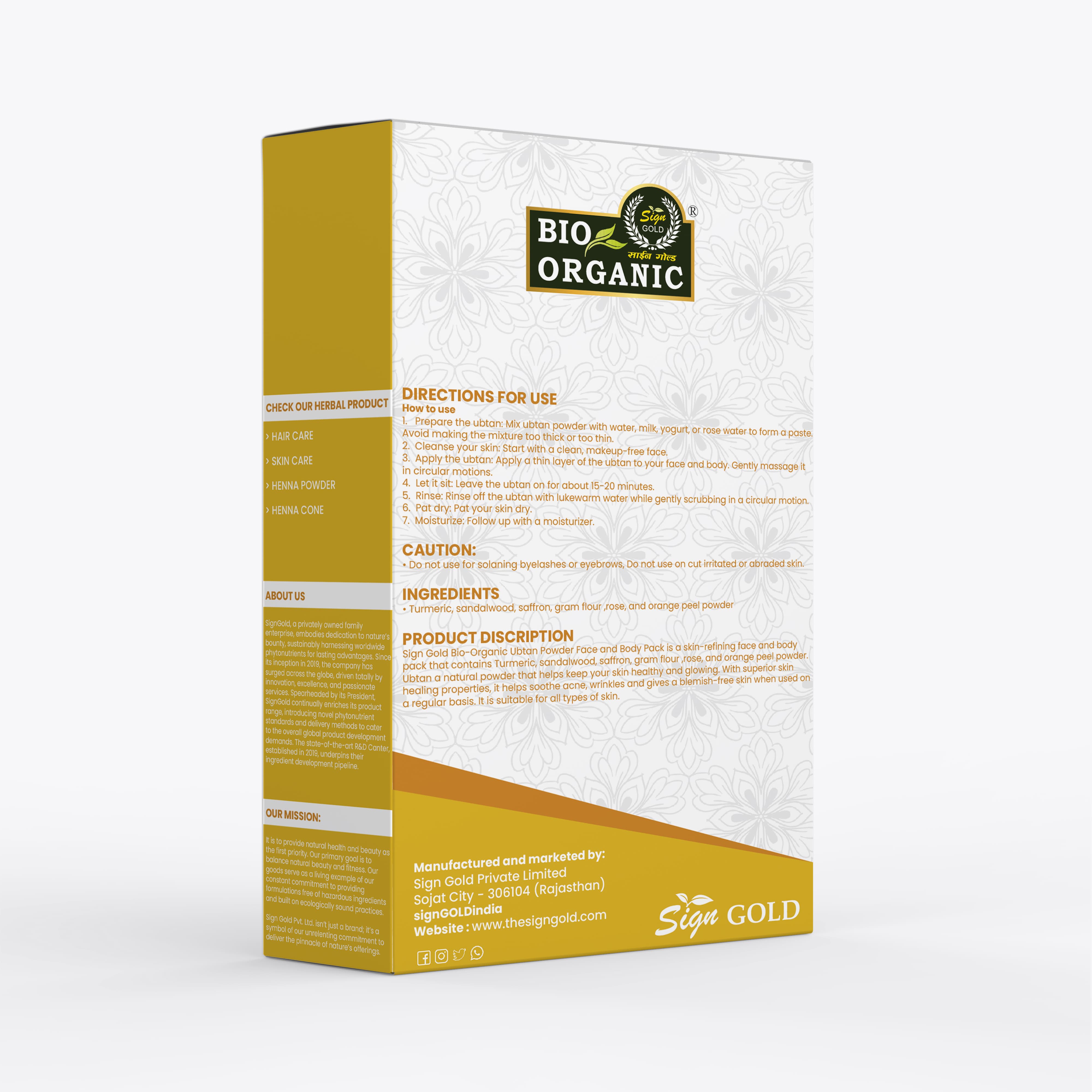 Sign Gold Herbal Face Pack is a natural skincare solution enriched with the goodness of time-tested Ayurvedic herbs. Carefully formulated to suit all skin types, this face pack helps remove impurities, reduce acne and pigmentation, tighten pores, and give your skin a healthy, radiant glow.